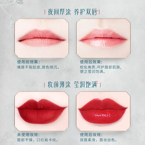 这款花润参养唇膜,卓效保湿补水,有效淡化唇纹,温和去角质,双唇更加柔嫩。
