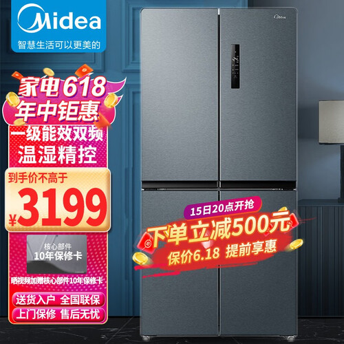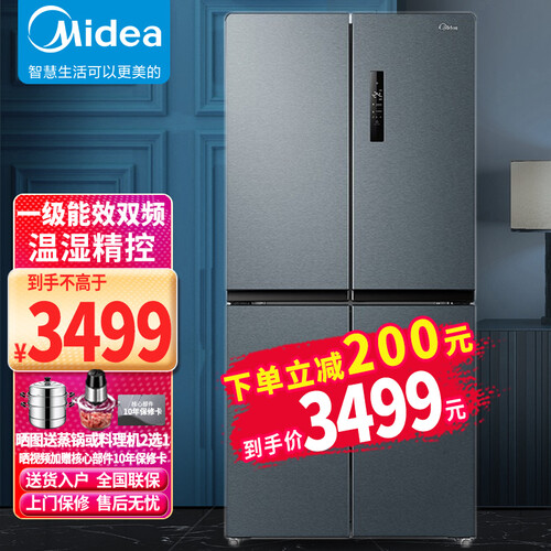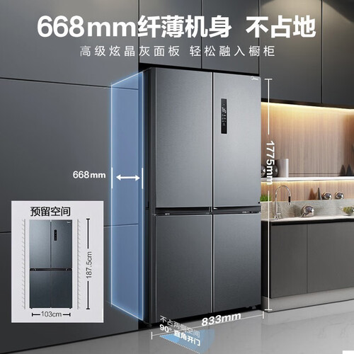美的双变频十字对开门冰箱