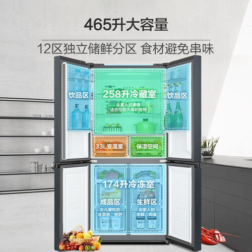变频压缩机加变频风机双效合一,节能省电更静音。360度双系统风冷循环,食物不风干不串味。