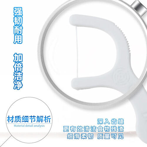 细滑牙线设计,柔韧耐用,轻松深入齿缝清洁食物残渣,帮助保持口腔清洁,减少细菌滋生,持久保护口腔健康。