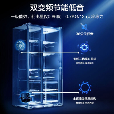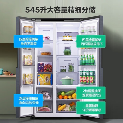 采用大容量设计,可以容纳足足545升食材,适宜大家庭使用。净味速度快,十九分钟即能完成急速净味,保持味道清新。