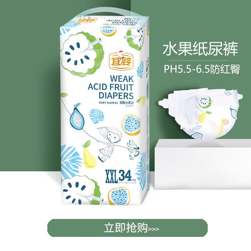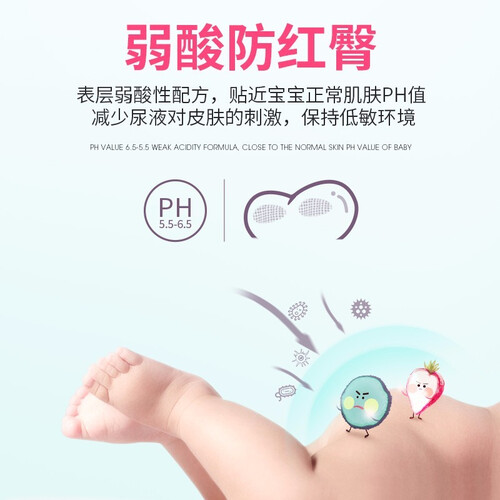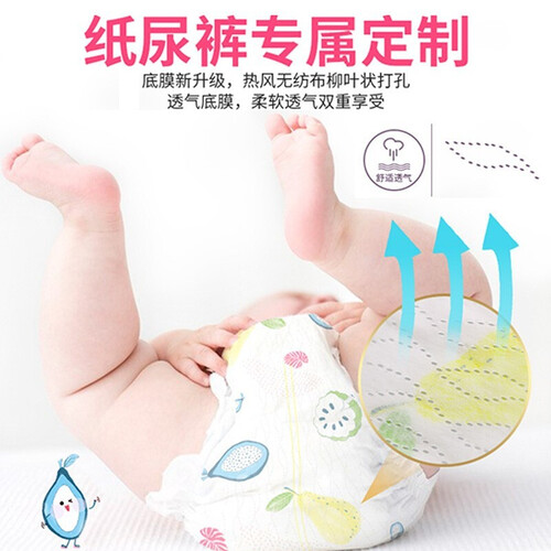 选用全新的缤纷水果3D压纹外观设计,能减少尿液与肌肤的接触时间,有效呵护孩子细嫩肌肤。无纺布的透气底膜,享受舒适体验。
