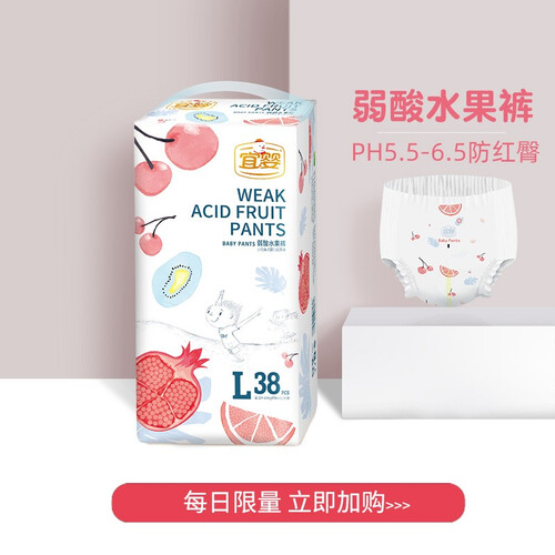 表层弱酸性配方,贴近宝宝肌肤PH值,降低刺激性。缤纷水果3D压纹,有利于加快尿液吸收和导流。