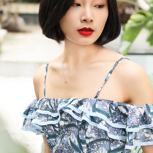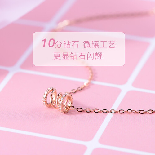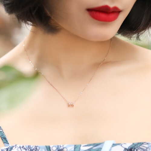 弧度优美的小蛮腰项链,灵动有趣不乏设计感,轻易凸显出婀娜风姿。表面镶嵌上多颗钻石,闪耀出璀璨光芒,分外刺激视觉效果。