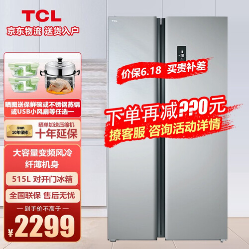 TCL 520升对开门冰箱
