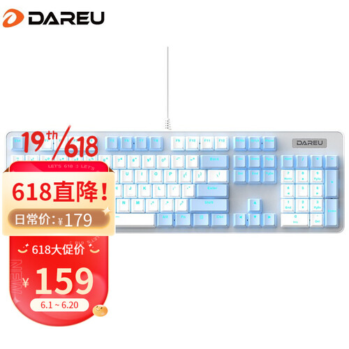 拥有较高颜值的一款键盘,清新又惊艳的白蓝配色,视觉效果非常清丽淡雅。采取全键无冲的设计,输入时避免冲突效率更高。