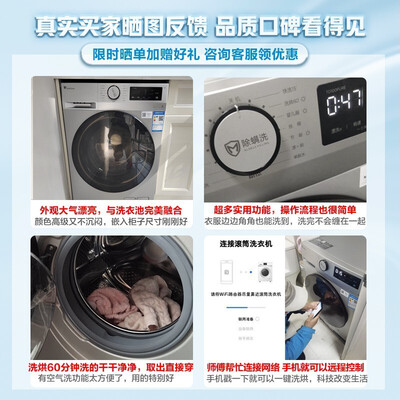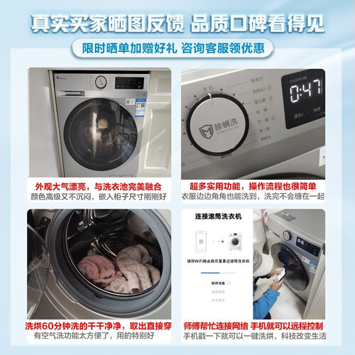 60分钟快洗快烘,洗后便可随心穿,不用长时间等待晾晒;一键消毒,可以强劲消除有害细菌螨虫,穿衣不致敏。