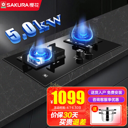 樱花 台嵌两用定时燃气灶