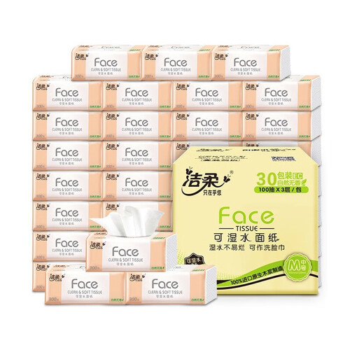 多层加厚的纸质,提供更好的吸水性和柔韧度,清洁力好不易破损;弧形压线的开口设计,轻松开口,便捷抽取。