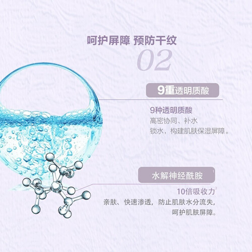蕴含鸢尾提取物,能够刺激蛋白新生,立体紧致轮廓,重现年轻美肌。水润轻盈,可快速渗透至角质层,肌肤无负担。