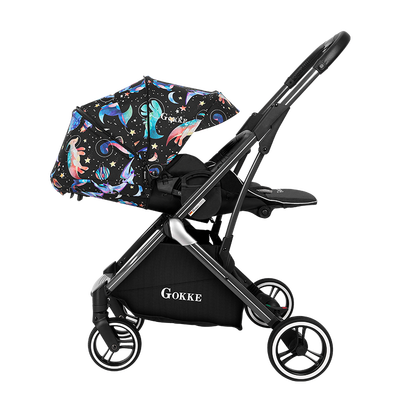 可以折叠的婴儿推车,轻便好携带,还能方便放入车内收纳。配上萌宠图案,样式俏皮又充满了童趣,富有创意感。