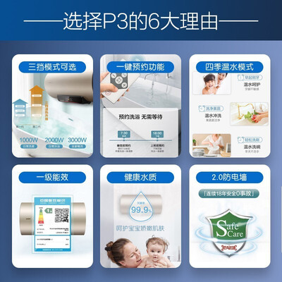 一级能效加持,让电热器在日常生活中能够表现更是出色的节能省电效果。拥有四季的温水恒温功能,让你时刻使用都怡人。