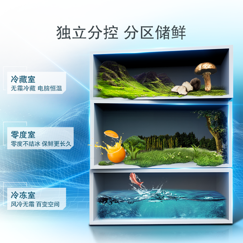 LCD显示+触摸控制,温度和功能一目了然,操作更方便,轻松调节温度。风冷无霜科技,制冷快速,无霜保鲜,告别手动除霜烦扰。
