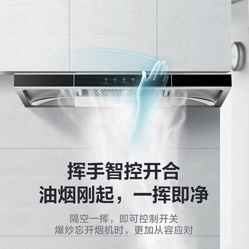 采用挥手智控技术,隔空便能轻松开关,不易脏手。WiFi智控,搭配手机APP操作,随心操控烟机,便捷又省心。