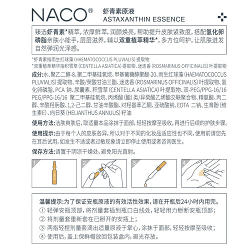 从积雪草中提取的精华成分,可以有效的抵御老化,还有很好的补水保湿作用。含有丰富的维生素E成分,为肌肤补充更多营养。