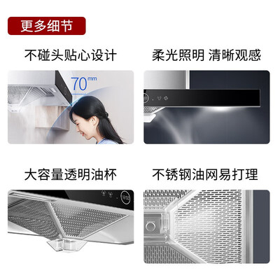 内置420Pa大风压,快速排除油烟,不易发生倒灌。加深的拢烟腔,能够形成拢烟屏障,从而提升拢烟效果。
