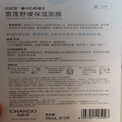 自然堂 雪莲舒缓保湿面膜