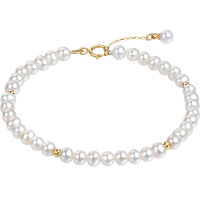 甄选温润珍珠串联手链,色泽柔和莹亮,倍显温婉气质。结合K金圆珠稍加点缀,更添几分清新感,释放甜美气息。