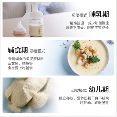 DEO净味,食材清新洁净,三挡变温空间,可自由调控。搭载母婴独立空间,4℃冷藏,隔绝外界污染,呵护宝宝健康成长。