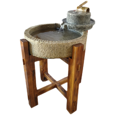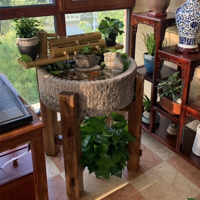 流水趣 鱼缸老石槽石磨流水摆件
