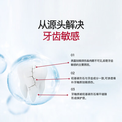 源头抗敏配方,全面修复受损的牙釉质,带来温和的口腔护理。同时具有美白功能,修护敏感的同时美白牙齿,让你爱上刷牙。