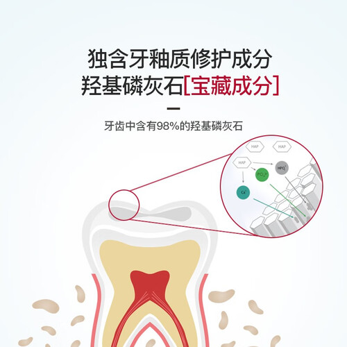 添加宝藏护齿成分羟基磷灰石,可在齿表形成保护膜;另配合木瓜活性成分,坚持使用,牙齿看得见的洁白焕变。
