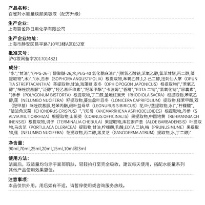 采用小分子精华,能够透过角质深入肌肤,充分发挥作用。甄选忍冬花为原料,让肌肤喝饱水,显得更加水润Q弹。