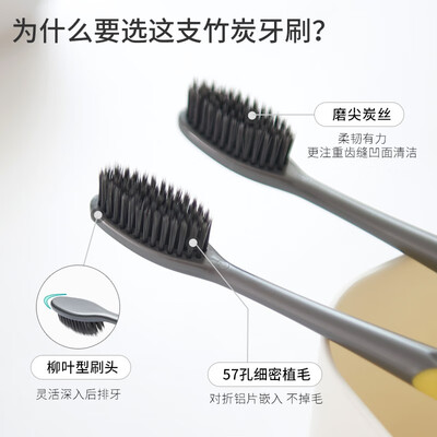 小巧而且灵活的刷头拥有更好的刷牙效果,能轻松探入口腔深处进行清洁。竹炭刷毛吸附效果好,清洁能力远超同类,牙齿更洁净。