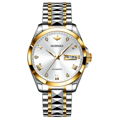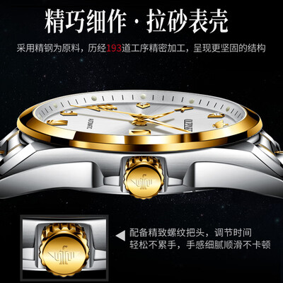 经典金色大三种搭配白色表盘,时尚吸睛,轻松驾驭各种穿搭风格。表盘加持logo刻印点缀,有效提升品牌辨识度,凸显品牌品味。