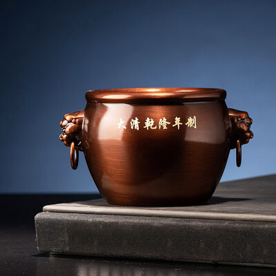 采用纯正铜质为原料,经铸造精修等工艺而成,光泽温润,整体稳重大方,简约而不简单。缸内摆放金元宝,寓意美好,是送礼佳选。