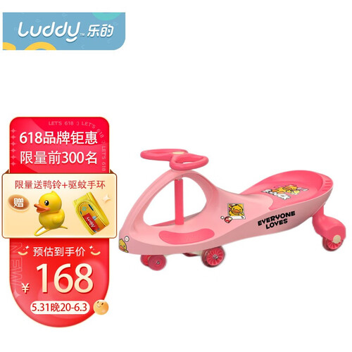 一款可爱萌趣的粉色卡通儿童扭扭车,采用高弹力的PU车轮,减震耐磨,轻松适应多种路面。