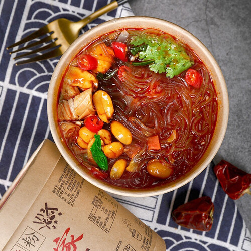 采用红薯木薯的淀粉制作,吃起来Q弹更加爽滑,嚼劲十足。搭配秘制的6大料包,可以让味蕾享受丰富多样的美味。