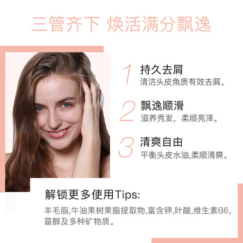 具有羊毛脂、牛油果树果脂精粹,为秀发提供丰富的营养,深层滋养。轻松减少油脂的分泌,补充水分,打造柔顺的发丝。