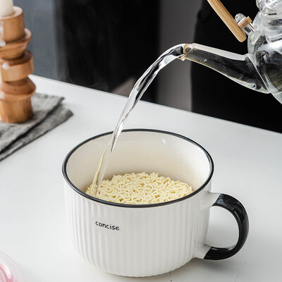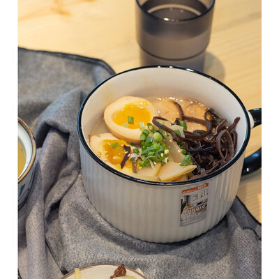 使用釉下彩工艺高温烧制而成,手感细腻,配上竖行条纹加以修饰,自带设计感。符合人体工学设计手柄,拿握舒适,吃饭喝汤不烫。