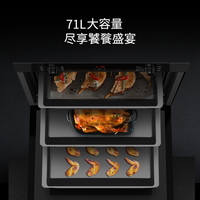 配置上下双加热系统,食材均匀受热,口感更酥脆。采用智能自清洁模式,轻松洁净顽固油污,洁净省心,放心使用。