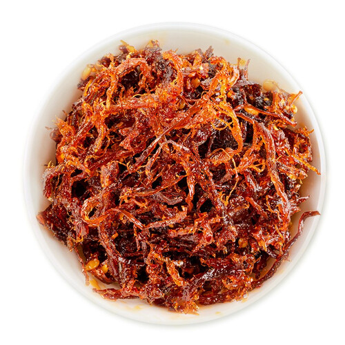 选用新鲜牛后腿肉制作,去除牛筋,令牛肉丝的口感更好。24小时腌制结合现代技术,更加入味,品味鲜明的川渝味道。