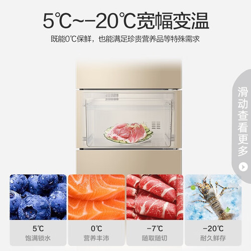 ﹣25℃深冷锁鲜,快速生成冰晶层,锁住食材营养不流失。360°环绕立体送风,不直吹食材,防止果蔬风干。