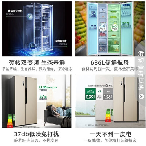 运行声音低至37分贝,享受安静储鲜,不扰家人生活。隐形门把手的设计,避免外凸走路磕碰受伤,更加贴心。