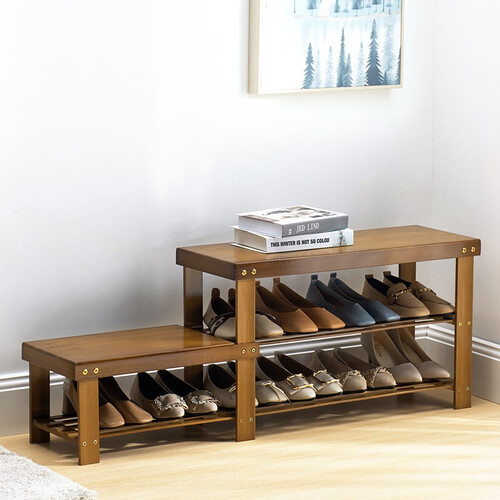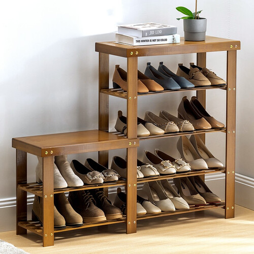 高低结构鞋架不止能收纳鞋子,还拥有换鞋凳功能,可以坐着换鞋,方便女性穿脱高跟鞋,实用升级。
