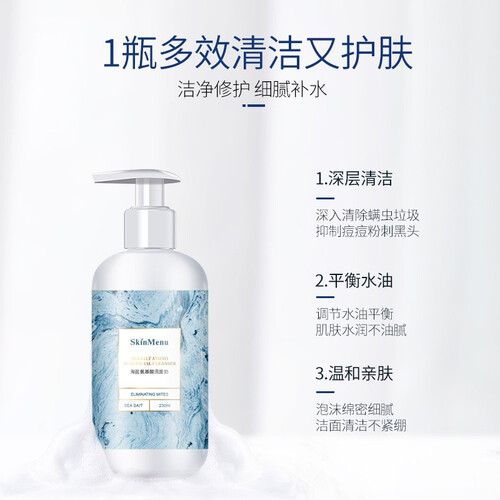 采用植物除螨配方设计,富含四重氨基酸成分,质地温和,净肤0负担。海盐矿物质和天然植物组合,能轻松除螨护健康。