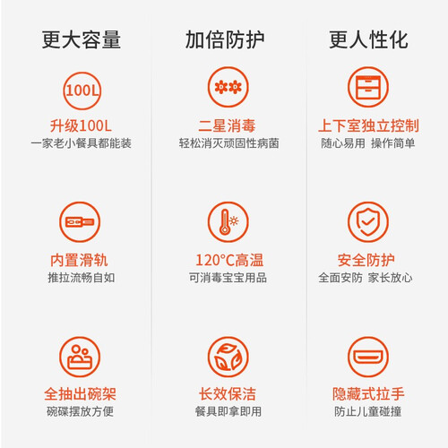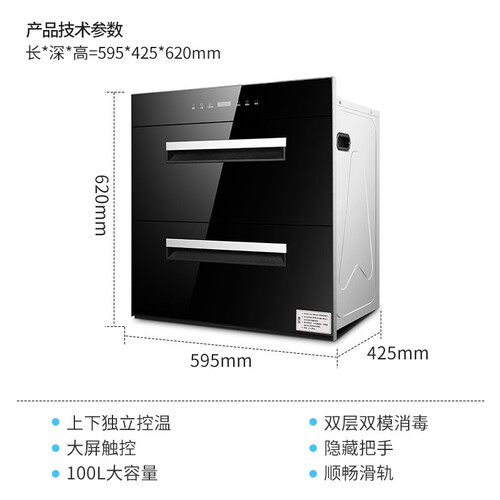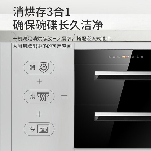 三开门触屏嵌入式消毒柜,更大容量,轻松应对多种餐具的收纳问题。国标二星消毒,放心消灭顽固性病毒,维护家人饮食安全。