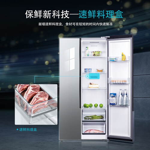 拥有速鲜料理盒的保鲜新科技,食物可以在较短时间内快速解冻,避免变味。使用变频压缩机,低噪低碳,静享出众保鲜。