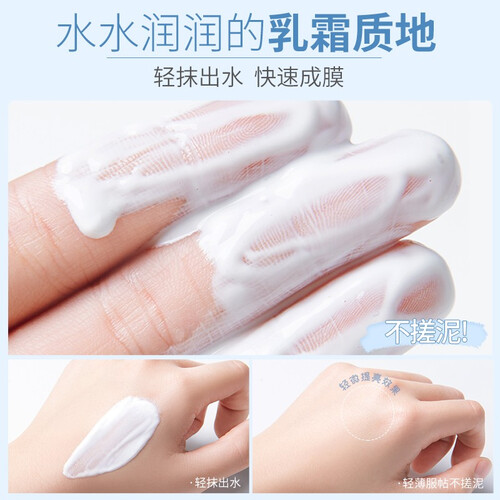 轻薄不搓泥,自然不假白的防晒霜,0酒精配方,温和不刺激。水润的质地,透气性很好,能有效阻隔紫外线侵袭,防止晒黑。