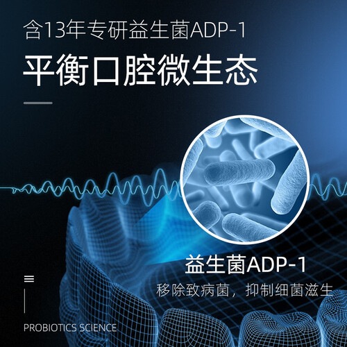 蕴含益生菌ADP-成分,可以平衡口腔的微生态,为你带来健康的口腔环境。加入微米级的摩擦剂,光滑细腻,呵护脆弱牙釉质。