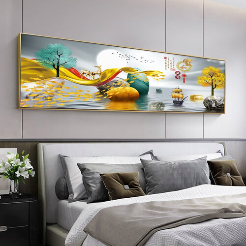 高质量油画布,画面细节立体生动,入眼美观大气。一体式的时来运转图案,大小户型都可使用,更显居家品味。