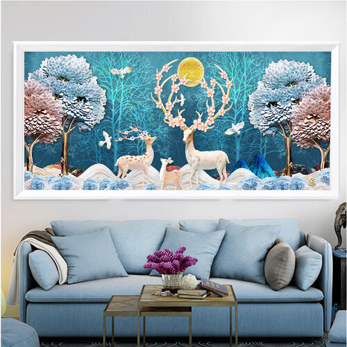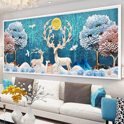 采用异形钻,可以折射出炫酷色彩画面,观感舒适自然。麋鹿森林图案设计,融洽和谐,象征着阖家团圆。