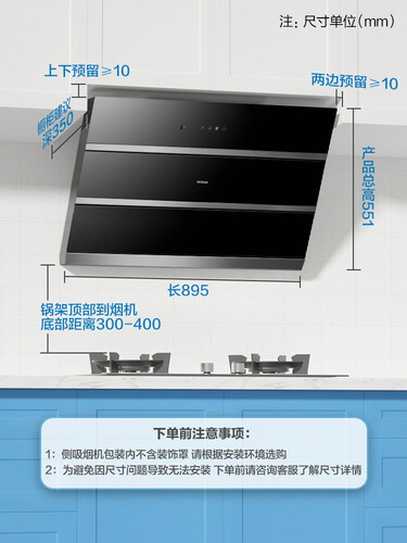 895mm宽屏拢烟,80°开合角贴近油烟一键瞬吸,搭载高性能电机持久吸烟动力强劲,玻璃镜面材质清洁方便易擦拭。