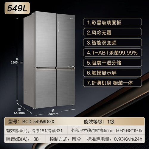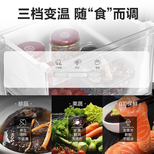 彩晶玻璃面板搭配布朗灰外观,尽显低调与奢华,光泽通透持久不褪色;五区精储空间,果蔬、肉类都能囤放,新鲜不串味。