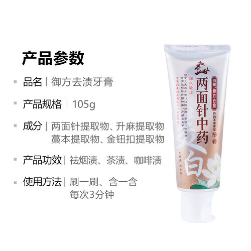采用中药草本活性成分,能够减轻牙龈肿痛等问题,呵护牙齿健康;去渍、 消炎组合装,搭配使用,让你拥有一口好牙齿。