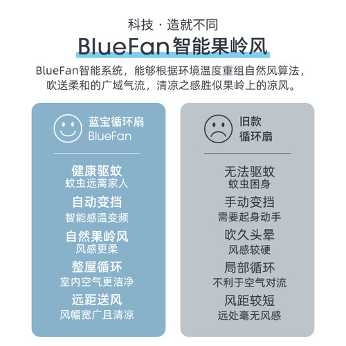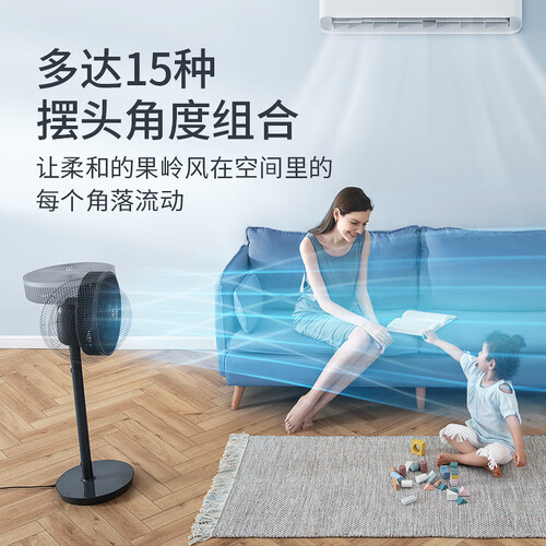 具有十五叶风扇片,打造自然凉爽的风,吹拂在皮肤上温和不刺激。智能感温变频系统,改善使用体验。